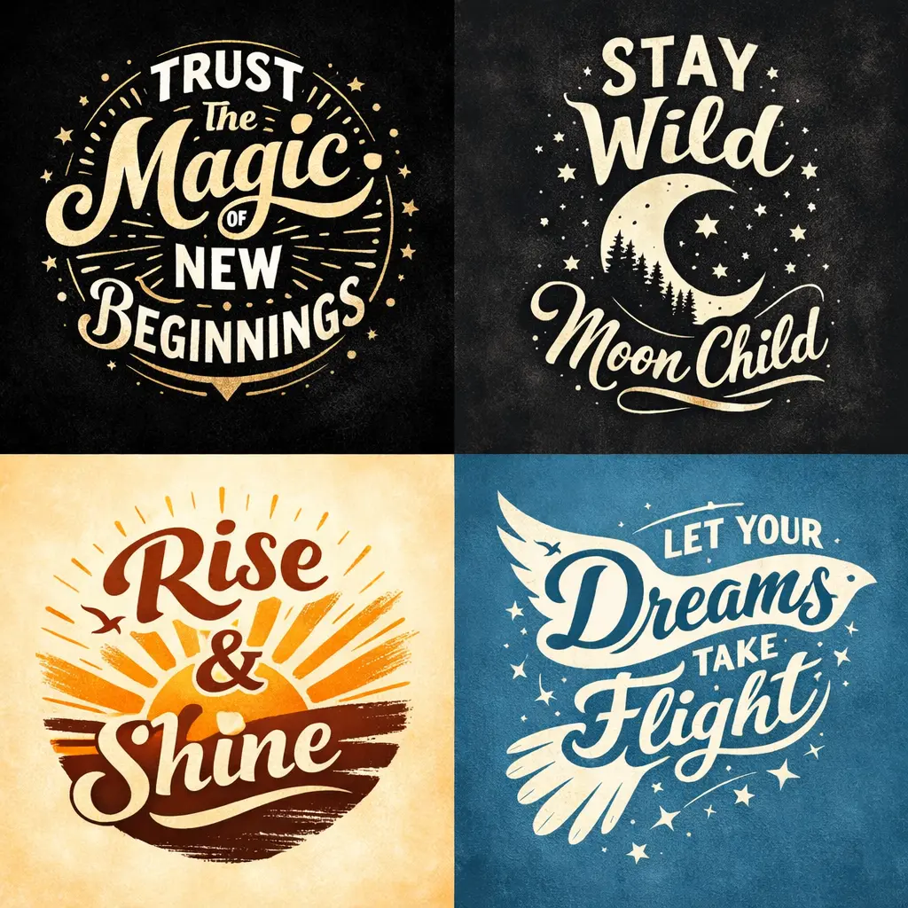 Phrase-based designs require careful consideration of layout and hierarchy. Short mantras or quotes work best, allowing adequate letter sizing for legibility. Arrange words in creative configurations, perhaps forming circular compositions or integrating letters with illustrative elements. Consider how line breaks affect meaning and visual flow.