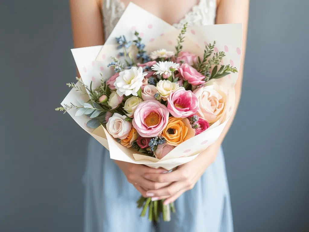 For those who enjoy a hands-on creative process, watercolor paper offers an extraordinary opportunity for personalization. Purchase a sheet of thick watercolor paper and paint it yourself with soft washes of color before allowing it to dry completely. Florals, abstract brushstrokes, or simple watercolor dots all produce beautiful results. Once dry, use it to wrap the bouquet exactly as you would standard kraft paper. The finished presentation feels genuinely artistic and tells a story of creative effort that no store-bought wrapping can replicate.
