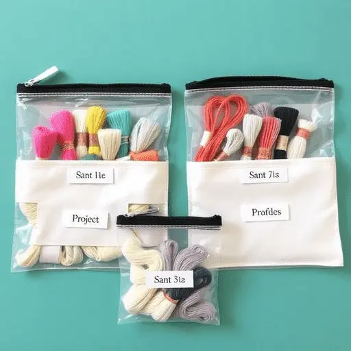 Label each pouch with the project name and date started. When you want to pick up a specific piece, everything you need is in one place with no searching, sorting, or re-threading required. Clear pouches work best for this system because you can identify the project at a glance without opening every bag.