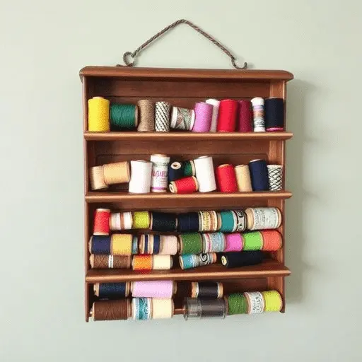 A wall-mounted spice rack repurposed for thread storage is one of those organizer ideas that is so simple it feels obvious the moment you see it. Small wooden or metal spice racks with three-or-four-tiered shelves hold wound floss bobbins or small thread spools perfectly, and the open-front design keeps every color visible. Mount the rack at eye level in your craft space and sort the bobbins by color family across the tiers.