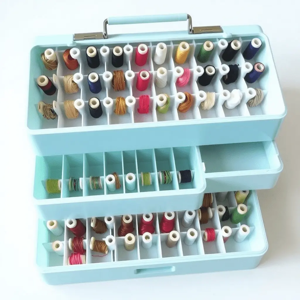 A fishing tackle box is one of the most underrated embroidery thread organizer options for DIY lovers who want a portable, budget-friendly solution. Multi-level tackle boxes feature rows of small adjustable compartments that are perfectly sized for wound floss bobbins. The hinged tray system allows you to view multiple levels of storage at once, and the secure closure keeps everything safe during transport.