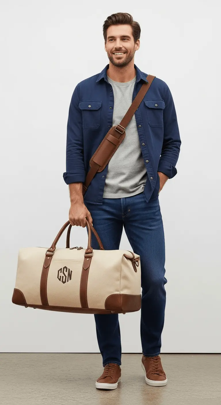 At 24, he is traveling more than at any other point in his adult life, visiting friends in other cities, taking weekend trips, flying home for holidays, and exploring new places whenever the opportunity arises. A well-made canvas duffel bag with genuine leather accents and his initials monogrammed on the side is a gift that serves every one of those journeys. It is durable, stylish, and sends a clear message that the person who gave it was actually paying attention.