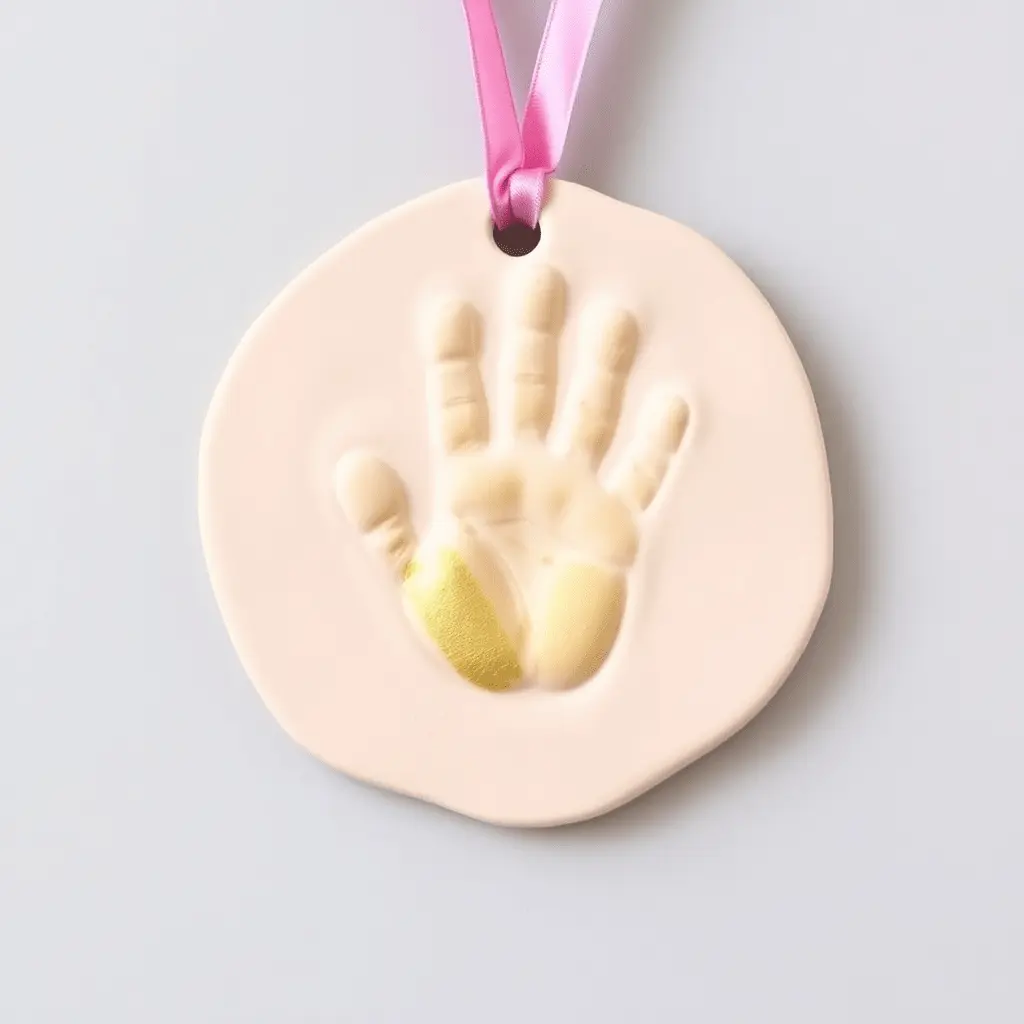 A thumbprint pendant captured in polymer or oven-bake clay is a wearable keepsake that Mom can carry with her every day. Press the baby’s thumb into a small, flattened disc of clay to capture the full fingerprint pattern, pierce a small hole at the top, and bake according to the clay manufacturer’s instructions. Once cooled, sand the edges smooth, apply a thin coat of metallic paint or glaze, and thread the finished pendant onto a delicate chain. The resulting piece of jewelry is both beautiful and deeply personal, carrying something irreplaceable with it wherever Mom goes.