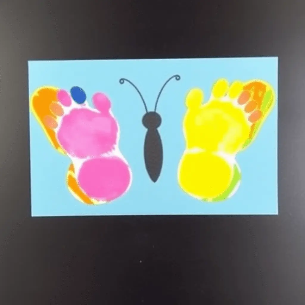 Two footprints positioned heel to heel with the toes fanning outward create a remarkably convincing butterfly shape, making this one of the most delightful and surprising Mother’s Day baby craft ideas for infants. Press one painted foot to the left and one to the right on a piece of card, allow them to dry, and then add a simple body drawn between them, antennae, and a sweet message. Use multiple colors on each foot for a vibrant, painted wing effect that makes every butterfly completely unique.