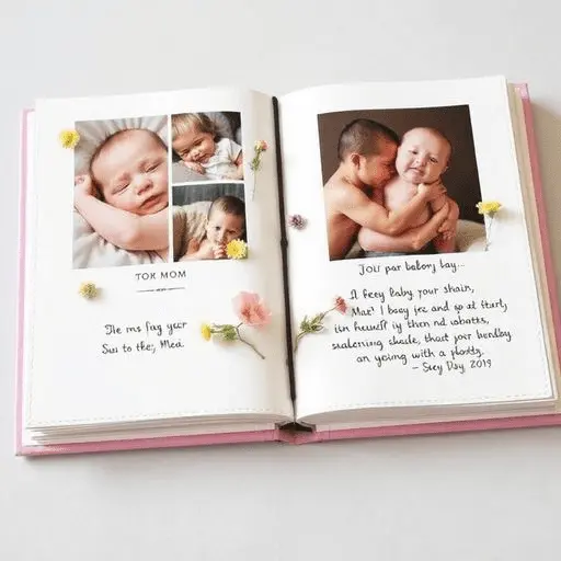 A handmade photo memory book filled with photographs from the baby’s first months makes an extraordinary Mother’s Day gift that grows in value with each passing year. Print favorite photographs, slip them into a small handmade or purchased album, and decorate each page with captions, dates, and small pressed flowers or stickers. Add a handwritten note at the front dedicated to Mom and the special bond she shares with the baby. This is one of those Mother’s Day baby craft ideas that requires no paint or mess but delivers enormous emotional impact.
