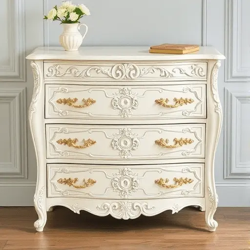 The French Provincial style of painted furniture is characterized by soft, chalky colors, ornate carved details, and an air of refined European elegance. A chest of drawers in this style is typically painted in muted ivory, dove gray, or soft duck egg blue, with the carved details either highlighted in a slightly darker or lighter tone of the same color or accented in gold leaf. The finish is usually waxed or lightly distressed to enhance the antique quality of the piece. This style is perfectly suited to master bedrooms, dressing rooms, or any space where you want a sense of quiet luxury.