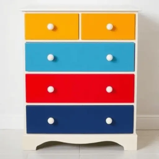 Painting each drawer of a chest in a different color of the rainbow is an idea that works especially well in children’s bedrooms, creative studios, and playrooms. It is joyful, bold, and utterly original. The trick to making this look deliberate rather than chaotic is to choose colors from the same paint range so that they share a consistent undertone and finish. Keeping the body of the chest, a neutral white or cream ensures that the colorful drawer fronts remain the star of the show. This idea is also a wonderful way to use up small sample pots of paint left over from other projects.