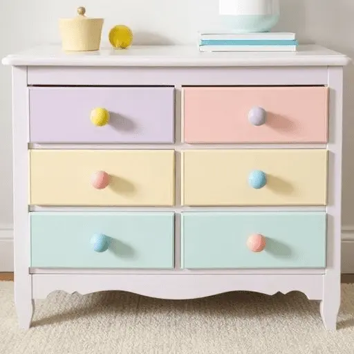 A chest of drawers painted in a soft pastel is one of the sweetest and most practical furniture updates you can make for a child’s bedroom. Lavender, mint, baby yellow, powder blue, and pale peach are all colors that feel cheerful without being overwhelming. Mineral paint brands are ideal for this application as many come with a built-in primer and topcoat, reducing the number of steps involved. Add colorful ceramic or novelty-shaped drawer knobs in contrasting tones to complete the look and give young children a piece of furniture that feels genuinely made for them.