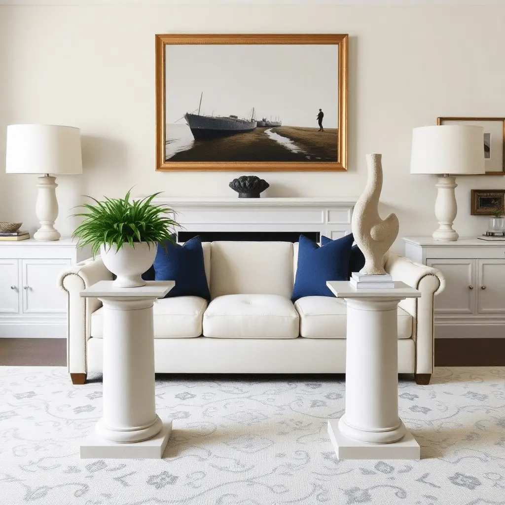 3.Symmetrical Pedestal Pairs Flanking a Sofa or Doorway