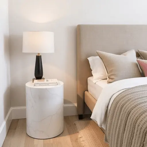 The modern bedroom is increasingly moving away from matching bedside tables toward a more eclectic, layered approach. A cylindrical or square pedestal used as a nightstand brings unexpected height, material interest, and sculptural quality to the sleeping space. A marble cylinder pedestal beside a low-profile bed creates a striking contrast. Top it with a minimal lamp, a single book, and a small tray for essentials, and the result is a nightstand that functions beautifully while looking far more interesting than anything standard.