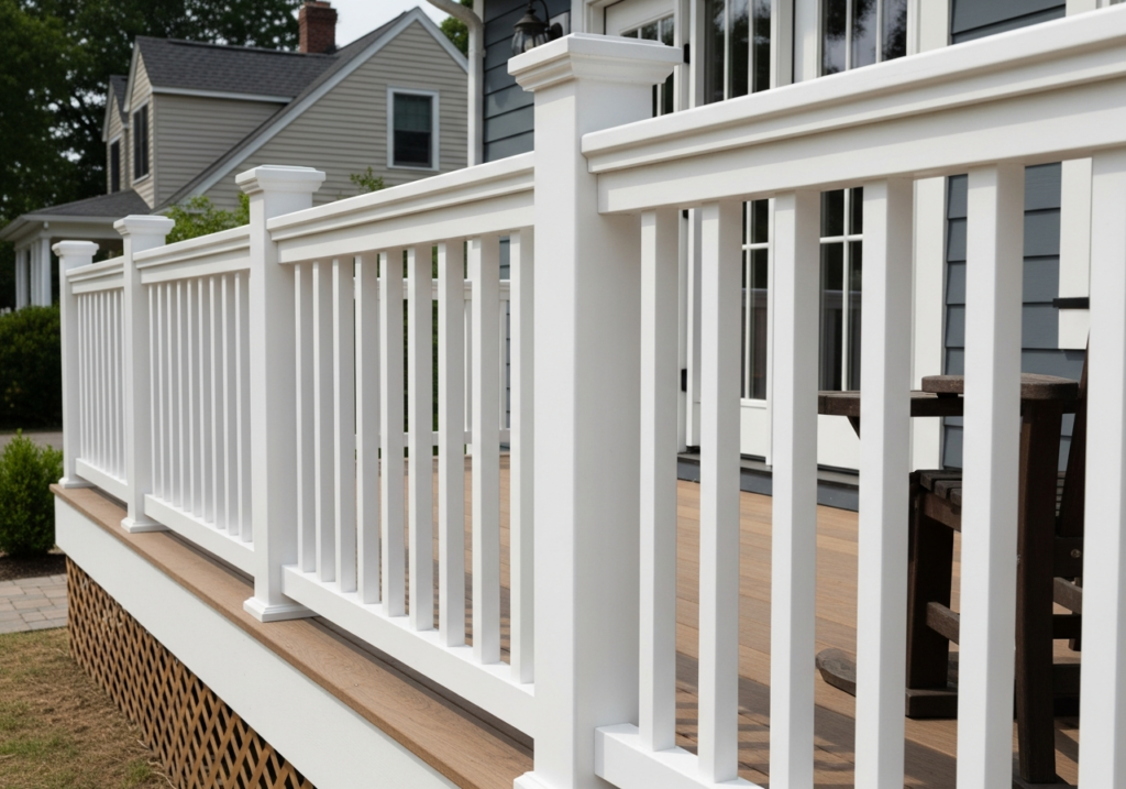 Composite materials combine wood fibers with plastic polymers to create boards that resist moisture, insects, and decay. These railings offer wood’s visual appeal without maintenance demands. The material won’t splinter, crack, or warp, making it safe for families with children and pets.