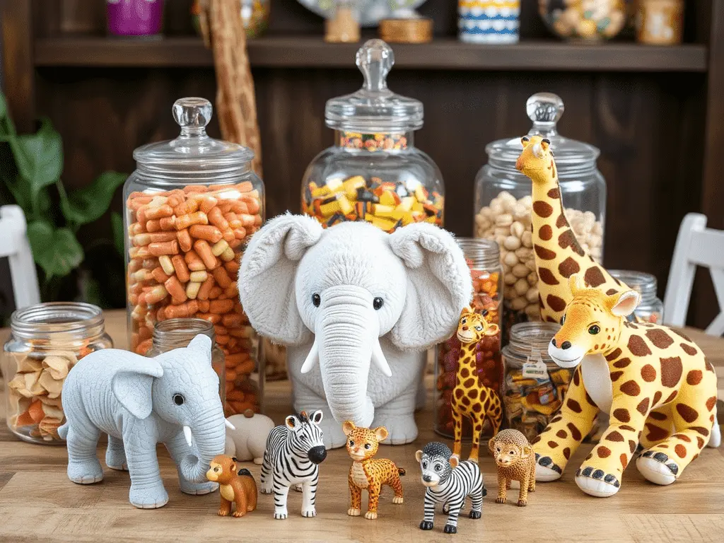 Animal figurines are the single decorative element that communicates the safari theme most directly and powerfully. Their presence transforms a candy table from a general sweet display into a fully themed installation.