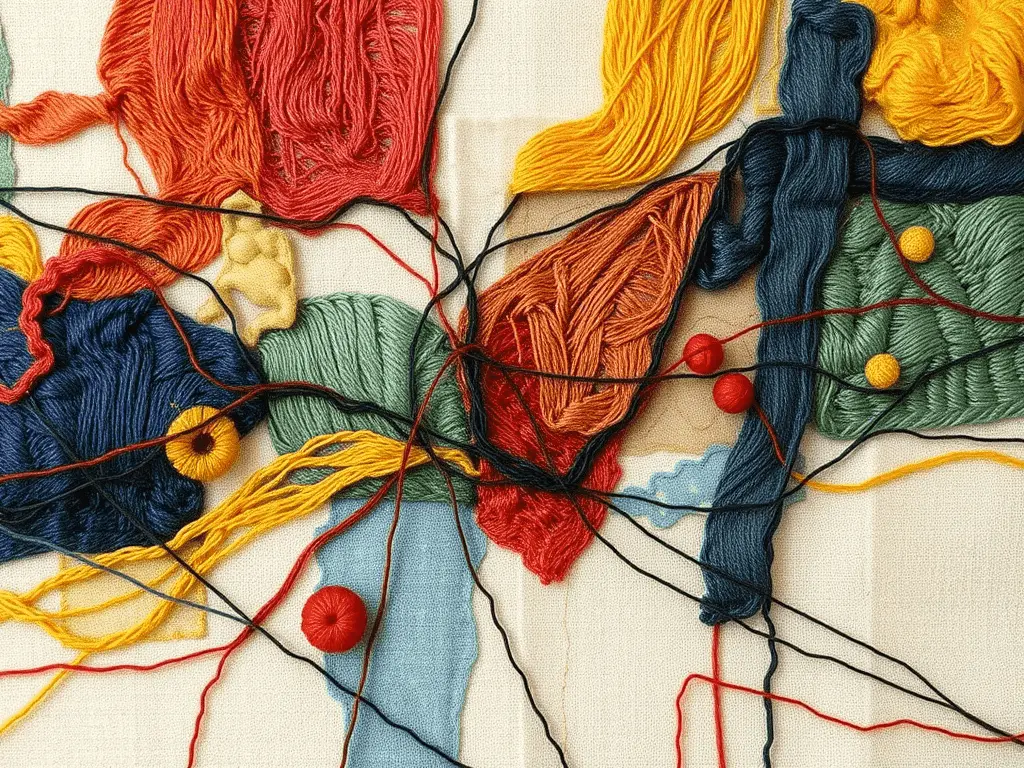 Abstract embroidery breaks free from representation entirely, exploring color, line, and texture as pure visual elements. Inspired by painters like Kandinsky or Klee, abstract embroidery uses free-motion stitching, overlapping thread layers, and experimental stitch directions to create compositions that feel painterly and expressive. There are no rules in abstract embroidery, which makes it a particularly liberating practice for experienced stitchers looking to push creative boundaries.