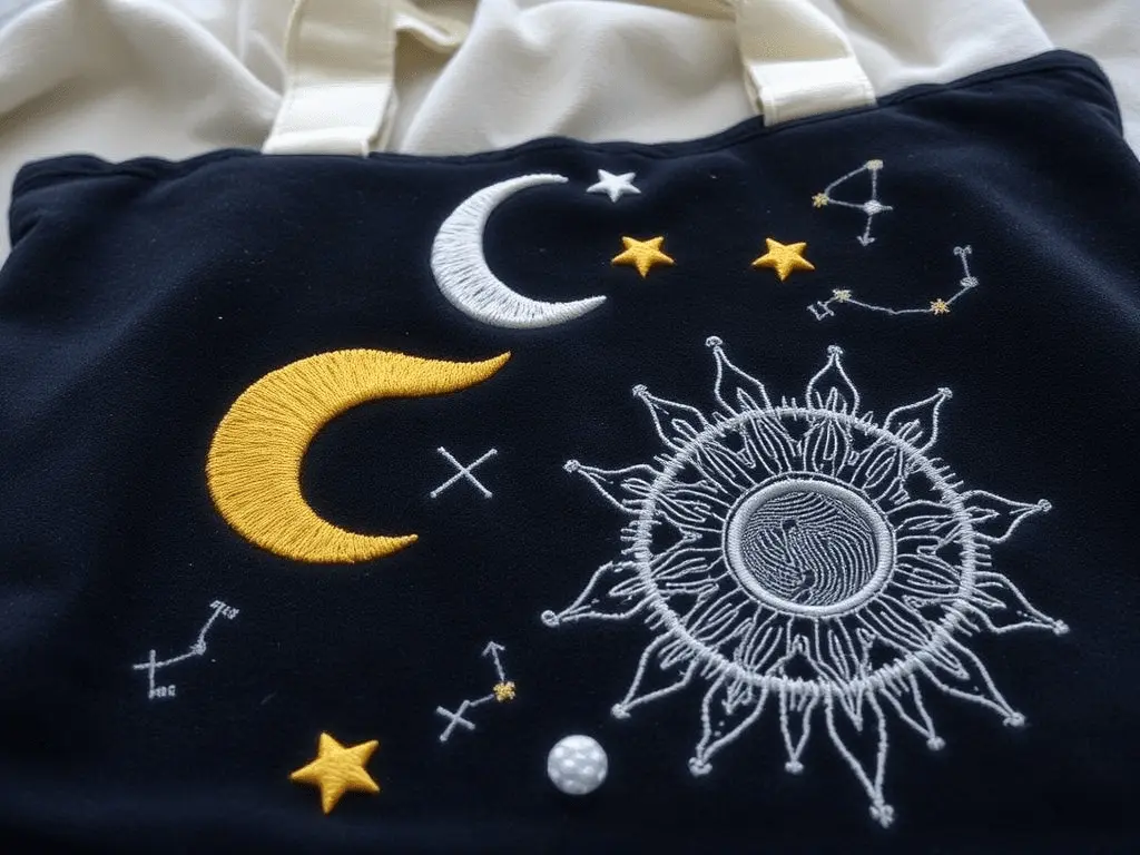 Celestial themes including moons, stars, planets, and constellations have become a defining visual language in modern embroidery. These motifs carry a sense of wonder and mystery that resonates widely. Crescent moons stitched in metallic gold thread, star maps rendered in pale thread on dark velvet, and detailed sun faces with radiating stitch patterns are among the most popular celestial embroidery ideas. This theme works beautifully on tote bags, bedroom decor, and clothing.