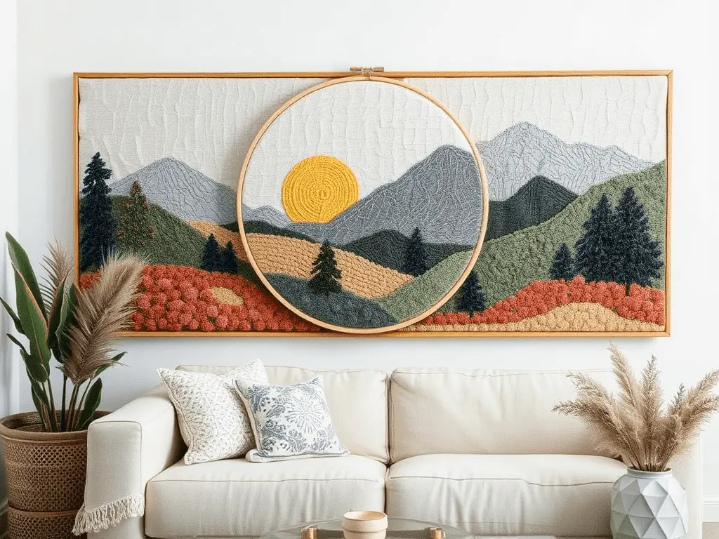 Embroidery has firmly established itself as a medium for interior design. Large, framed pieces, clustered hoop arrangements, and embroidered textile panels bring warmth, texture, and handmade beauty to living spaces. Modern embroidered home decor spans everything from abstract wall hangings to detailed landscape scenes. The combination of soft textile material with intricate stitching creates a visual and tactile richness that no print or painting can quite replicate.