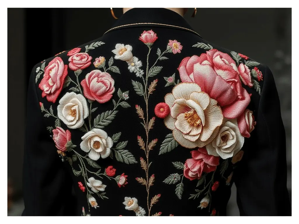While minimalism has had its moment, maximalist embroidery is making a bold comeback. Think oversized floral arrangements that cover entire jacket backs, densely stitched patterns with multiple competing motifs, and compositions that embrace visual abundance without apology. Maximalist embroidery celebrates the idea that more is more, and when executed with intention and skill, the results are breathtaking statement pieces.