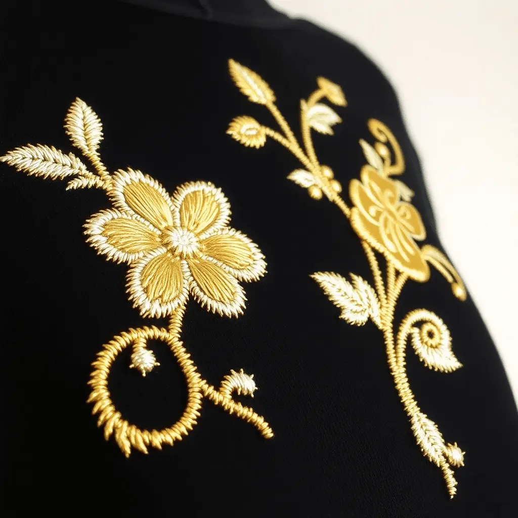 Metallic threads have made a dramatic return to modern embroidery, bringing shimmer and sophistication to everything they touch. Gold, silver, and copper threads add a luxurious quality to floral motifs, geometric borders, and abstract designs. This style looks stunning on dark fabric grounds, where the metallic sheen catches light and creates an almost jewel-like effect. Metallic embroidery works equally well on formal garments and casual denim pieces.