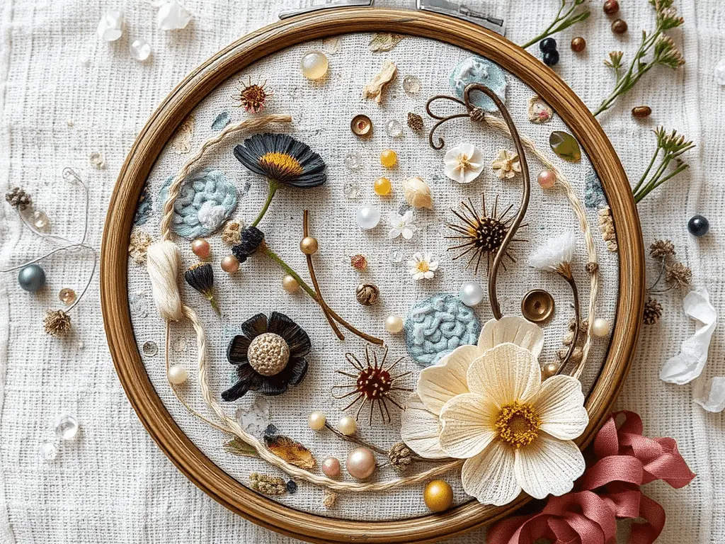 Mixed media embroidery incorporates materials beyond thread, including beads, sequins, fabric scraps, pressed botanicals, wire, and even paint. These elements are integrated into stitched compositions to create work that feels more like assemblage art than traditional needlework. The result is rich, layered, and completely unique. Mixed media approaches are especially popular among embroidery artists creating pieces intended for exhibition or sale as original artwork.