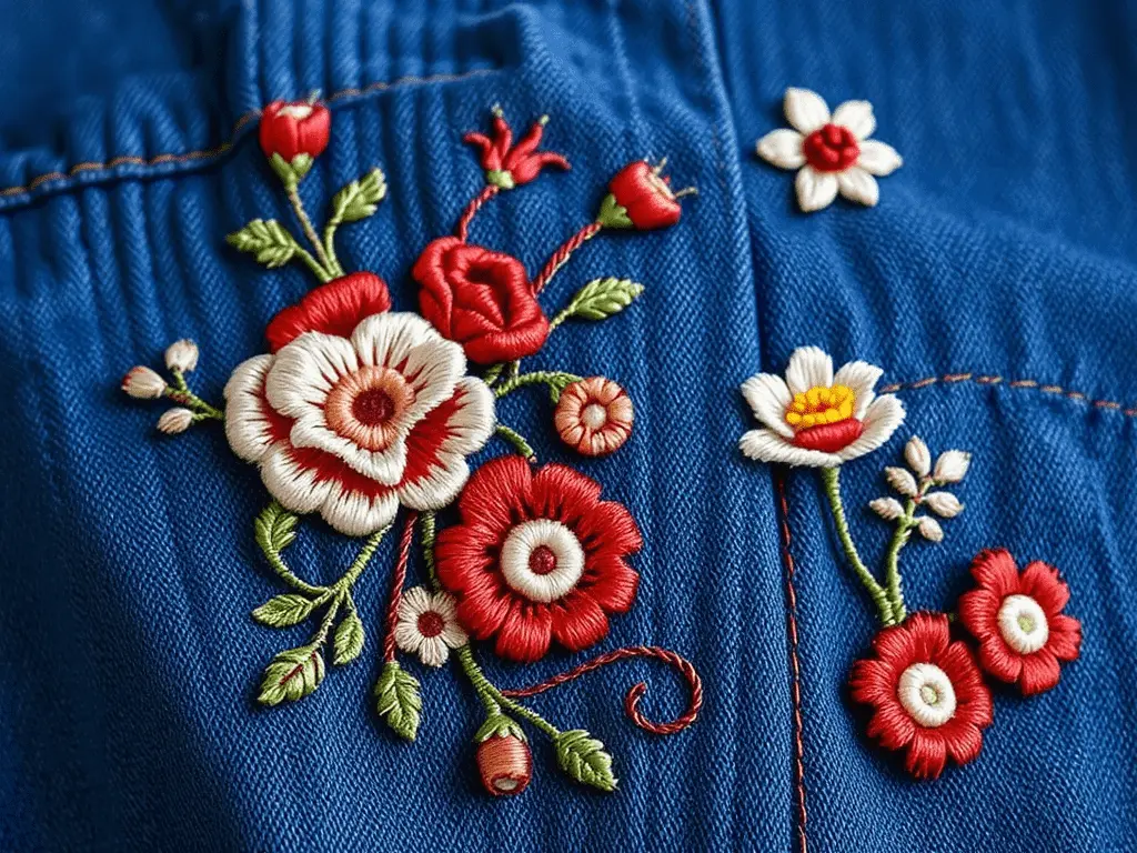 Nostalgia is a powerful creative force, and retro flowers embroidery taps into it beautifully. Vintage-style designs include old-school floral clusters, 1970s-inspired folk art motifs, classic monograms, and retro patch aesthetics. These designs look particularly compelling on denim, corduroy, and natural linen fabrics. Pairing a vintage embroidered motif with a thoroughly modern garment creates an appealing tension between old and new.