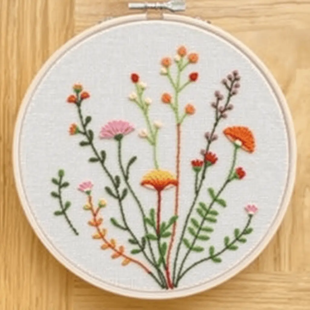 Botanicals remain one of the most beloved modern embroidery ideas, and for good reason. Delicate ferns, wildflowers, mushrooms, and trailing vines translate effortlessly into embroidery. Modern botanical work moves beyond traditional rigid outlines, favoring loose, illustrative stitching that captures the organic quality of plant life. Rich greens, warm terracotta tones, and dusty pinks are popular palette choices that give botanical pieces a painterly, studio-art quality.