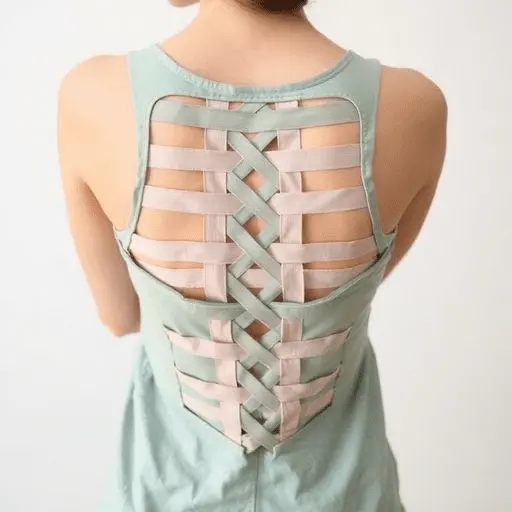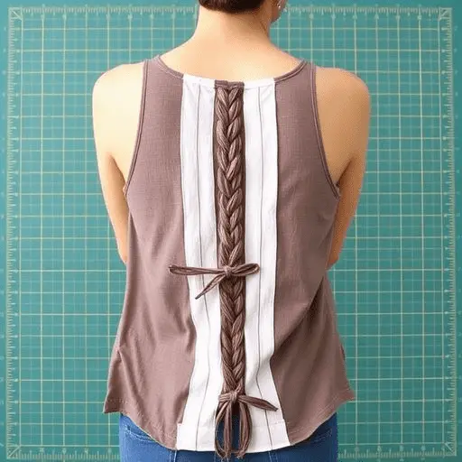 The braided back panel is the most technically involved design in this guide, but it produces a result that is genuinely striking and entirely unique. Cut the back panel of the tank top into vertical strips of equal width, approximately one inch each, cutting from the hemline upward to about two inches below the armhole. Leave the top two inches intact so the strips remain attached at the top. Begin braiding the strips in groups of three, working from left to right across the back panel. Secure the ends of each braid with a small knot or a thin strip of fabric tied tightly around the base.