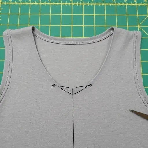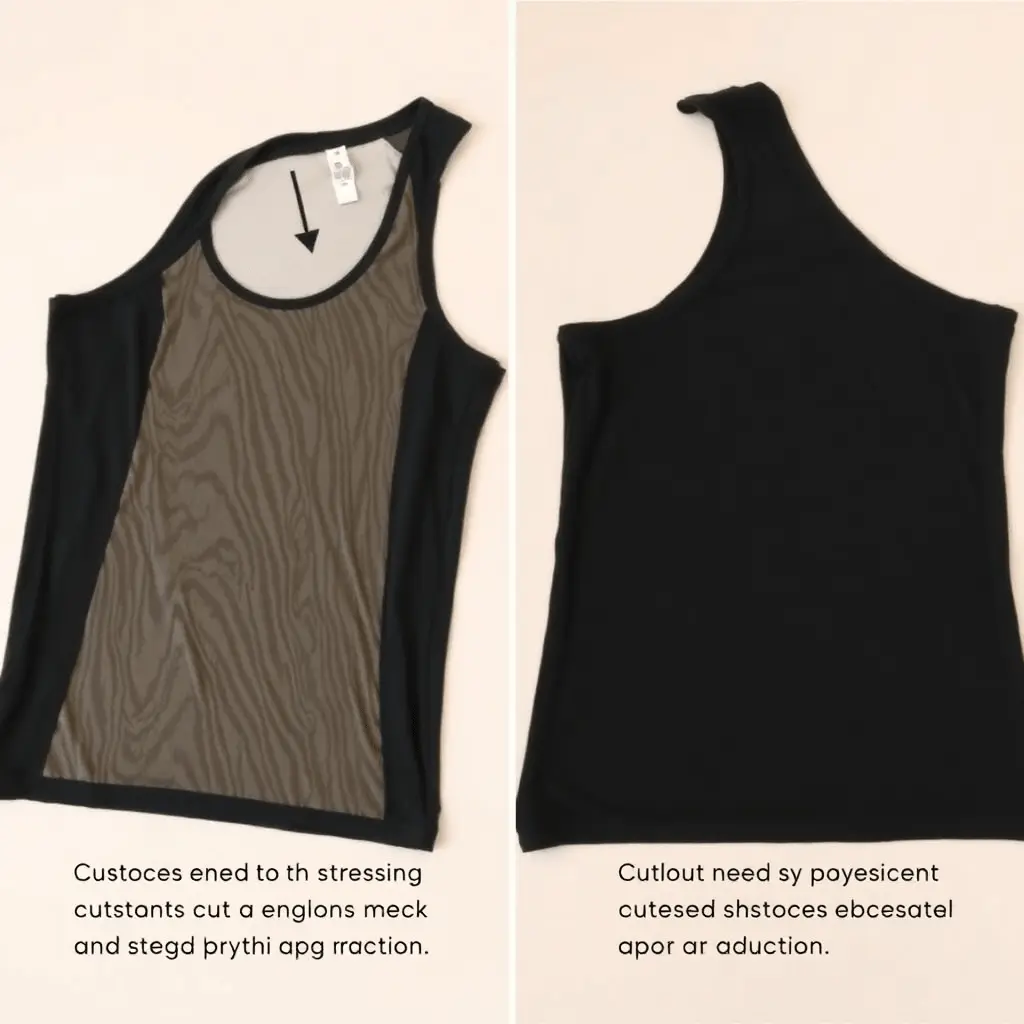 Converting a crew neck or round neck tank into a V-neck is a quick transformation that dramatically changes the overall character of the top. Mark the point of the V at your desired depth, typically two to four inches below the original neckline for a subtle effect, or further for a more dramatic result.