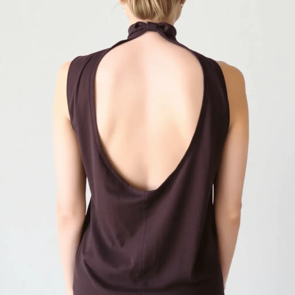Converting a regular tank top or t-shirt into a halter neck silhouette is a surprisingly simple process that delivers one of the most noticeable visual transformations in DIY cutting. Lay the shirt flat and cut along both shoulder seams, detaching the front panel from the back at the shoulders. On the back of the shirt, cut down from the neckline in a wide U shape, removing most of the back fabric to create a low-back or backless effect. The front panel retains its straps, which you then tie behind the neck to create the halter silhouette.