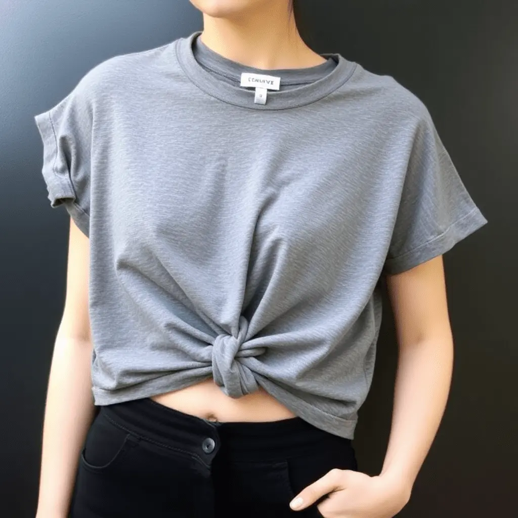 The tie-side crop is a particularly flattering style because it allows the wearer to adjust the fit each time the shirt is put on. Cut the shirt horizontally at your desired crop length. Then cut vertically up the left side seam from the hem to a point approximately two to three inches above the bottom edge, creating a flap on each side of the cut. Tie the two resulting strips of fabric into a bow or knot at the side of the waist. The knot pulls the fabric in and creates a relaxed, custom-fitted waistline that works for a wide range of body types.