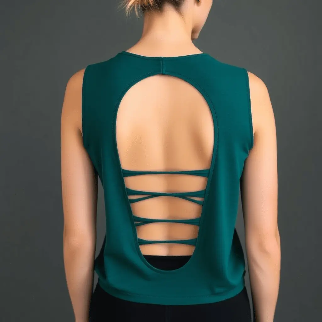 The depth of the racerback V determines how sporty or dramatic the final look feels. A shallow V reads as athletic and understated. A deep V that drops to the mid-back creates a more fashion-forward result that shows off the back beautifully when worn over a colorful sports bra.