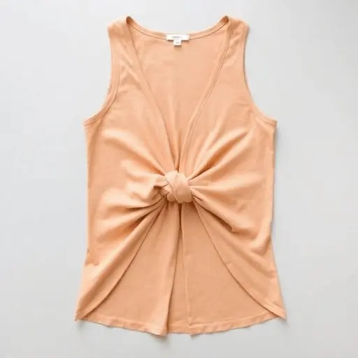 The twisted front knot is a contemporary styling technique that transforms a plain tank top into something that feels borrowed from a fashion editorial. Lay the shirt flat and cut a small horizontal slit approximately two to three inches wide at the center of the hemline.