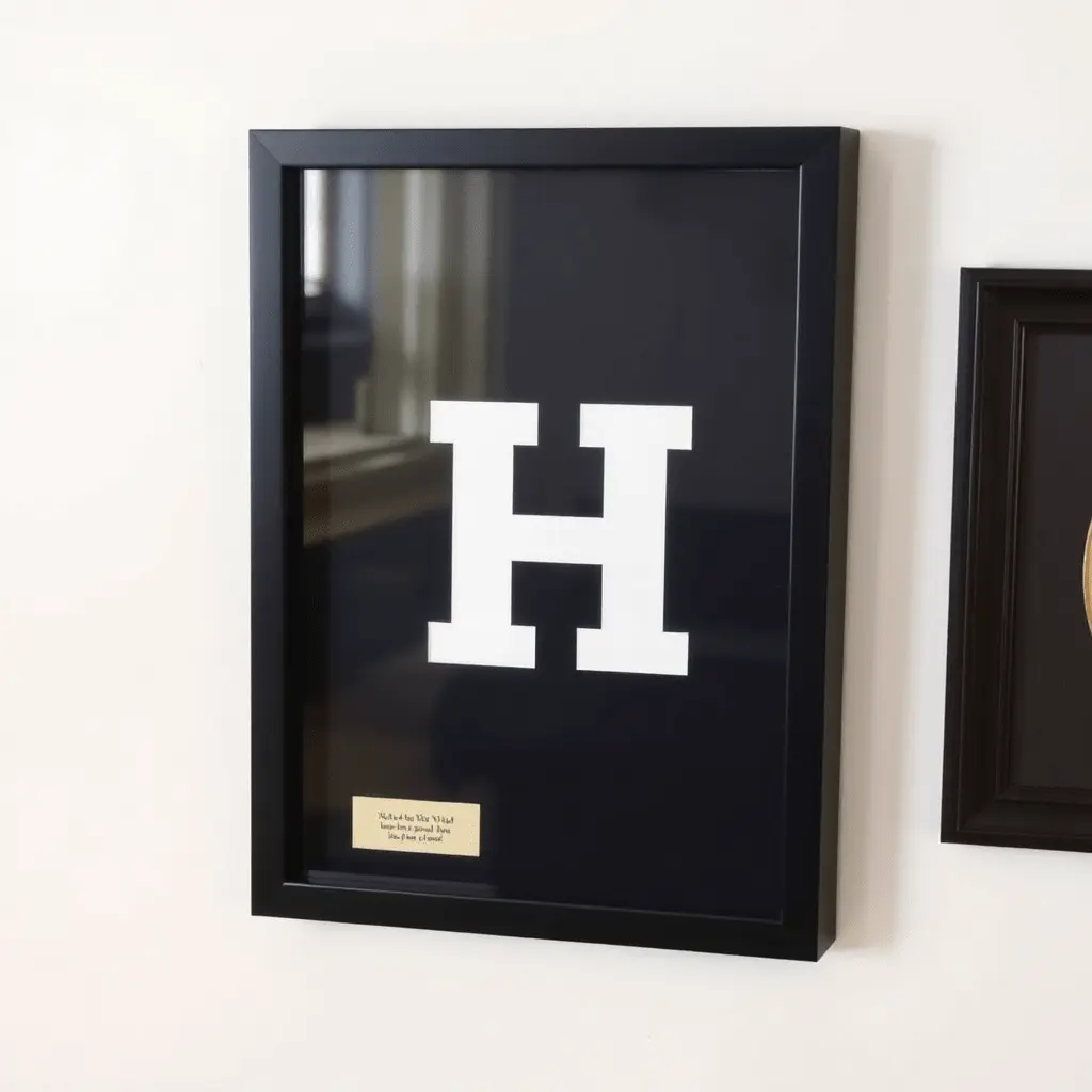 The cleanest and most timeless approach is placing the varsity letter at the center of a solid wood shadow box with mat board in your school’s official colors surrounding it. This style lets the letter speak for itself without visual distraction. It works especially well when the letter is large, bold, and rich in texture. A simple engraved nameplate at the bottom with the athlete’s name and sport completes the look beautifully.